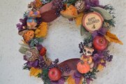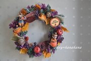 あらいぐまのピックがかわいい秋満載のハロウィンリースです。