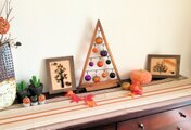 オールUSコットン使用のクルミボタンを使った、ハロウィンフレームです(背景に写っているオーナメントハンガーは非売品です)。