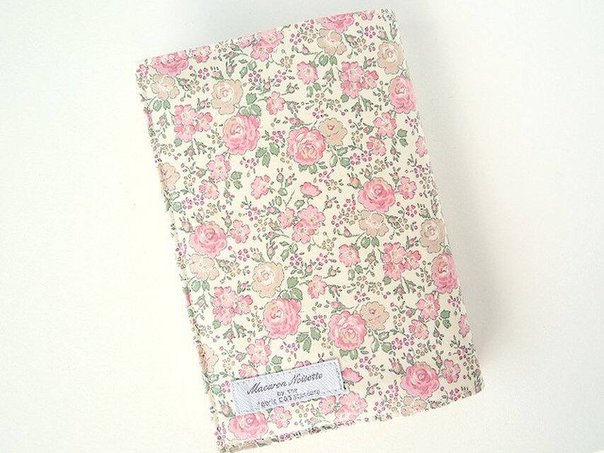 リバティの生地、フェリシテ Felicite(ライトピンク)とハーフリネンの生地でブックカバーを作りました。