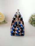 ◆【売り切れ】【再販2】変形ストライプのがま口ポーチブルー*幾何学*グレージュ*波*プレゼントや旅行に◆