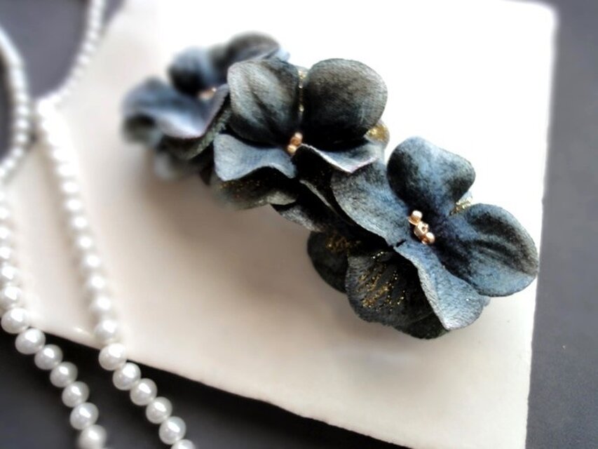 花びらのバレッタ ■ ビロード × グリッター ■ グレーブルー