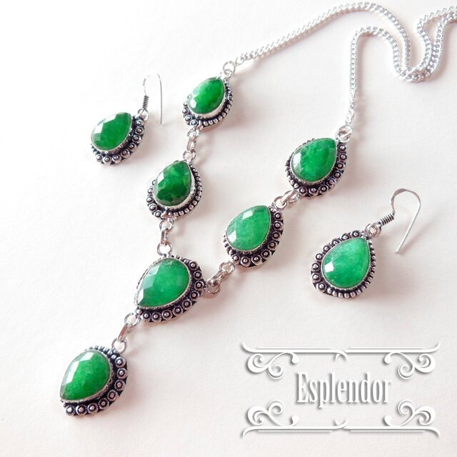 こちらは、発色の綺麗なコロンビア産のエメラルドのネックレス&ピアスです♪