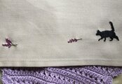 新緑の季節にぴったりな緑色のスカートが届いております 細い糸でこれでもかと思えるほど繊細なハルジオンの白い花、菜の花なずなの白い花が生き生き元気に春を喜んでるみたいです 可愛らしいカラスノエンドウ、清々しく青い空に似合う忘れな草までキジトラ猫さんを遊んでくれているようです♪ 美しすぎる作品を、しばし飾って眺めたいです
