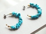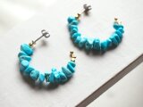原石のような、母石の残ったラフカットのスリーピングビューティーターコイズを通したピアスです。