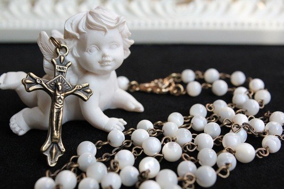 遅くなり大変申し訳ありませんm(_ _)m いつもとても素敵なロザリオをありがとうございます(*^^*)今回もセンターメダイと十字架と石のセンスがとても良くバランスが素敵です!大切にします。ありがとうございますまたよろしくおねがいします。