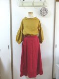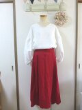 ダークレッド色 リネン100% イレギュラーヘム切替スカート ML