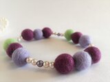 フェルトボールとガラスパールを組み合わせた犬猫用ネックレスです。