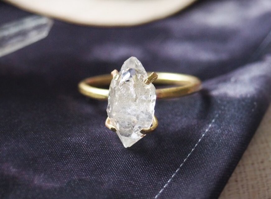 [一点物]原石のダイヤモンドクォーツのリング w663