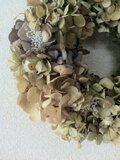味わいのあるアンティークなあじさいと、かすみ草、アンモビュームのシンプルでボリュームのあるリースです。