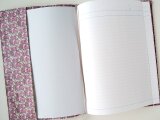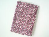 リバティの人気生地、コットンテイル Cotton Tail(ピンク)のラミネート生地(つや無)でA5サイズのノートカバーを作りました。