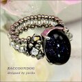 キラキラと内包物が輝くブルーゴールドストーン〔紫金石〕を使ったビーズリング作品です。