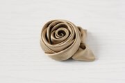 シルクサテンの光沢が美しいバラのコサージュです。サテンの華やかさにこっくりとしたオーカーの落ち着きがあります。やわらかいフォルムのシルクコサージュは、パーティーなどのフォーマルな場面やちょっとしたお出かけにも活躍します。