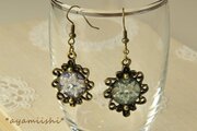 インドネシアの古い切手を背景に、星の形のモチーフをレジンで閉じ込めてピアスを作りました。