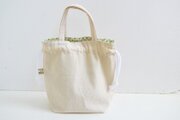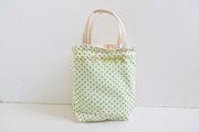 裏地は白×グリーンのドット柄生地を使用ています。ポケットは1つ付いています。(内ポケット17.5×14センチ)