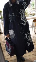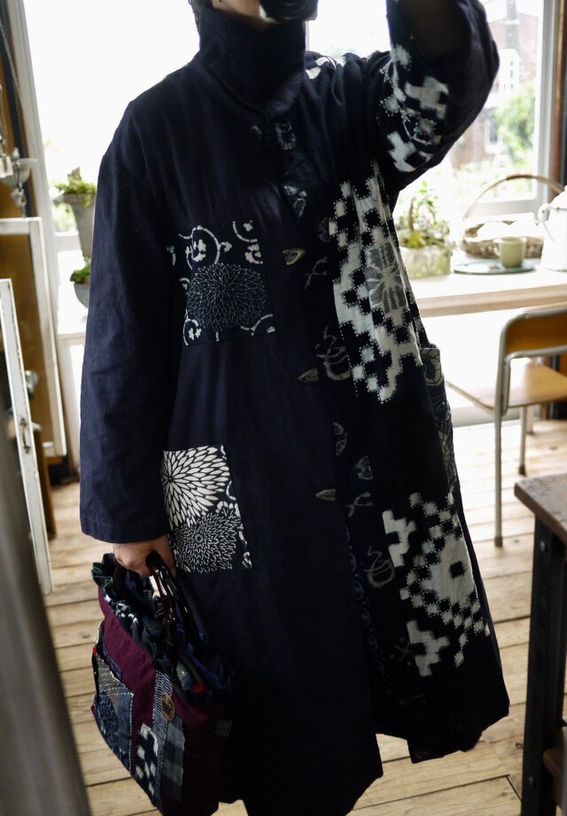 型押しの古布、藍染綿で単衣のコートを作りました。