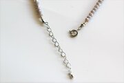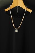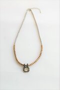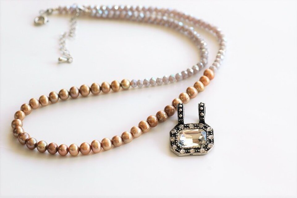 ガラスビーズと淡水パールのバイカラーネックレスに大きなビジューをあしらったネックレスです。
