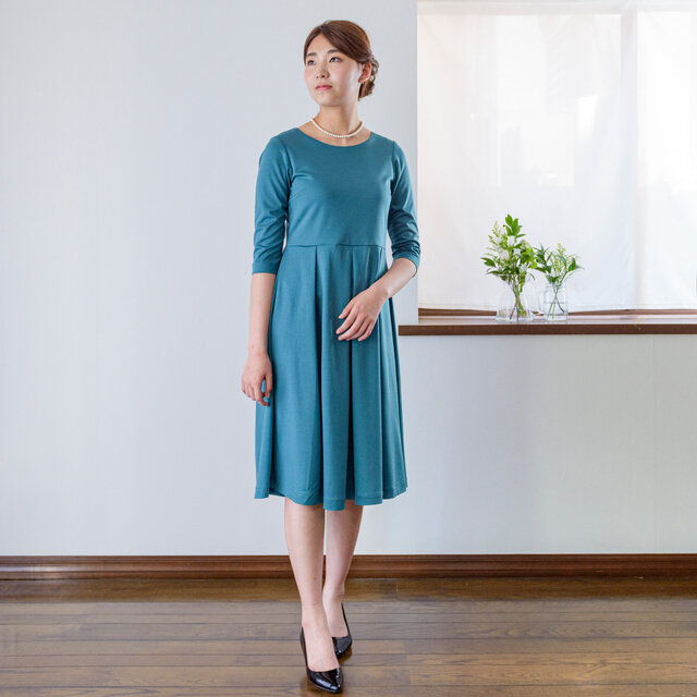┗ポケットやファスナー、ボタンなど余計な装飾を一切はぶき、シンプルを極めたワンピースです。その分小物やアクセサリー、着る人を引き立てます。