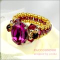スワロフスキーピンク系の大人可愛い鮮やかなビーズリング作品です。