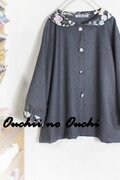 圧縮ウール100ダークグレー生地と大人気リバティタナローン<Irma>(イルマ)ブラックのフラットのヘチマカラーのドルマンジャケットをお作りしました。