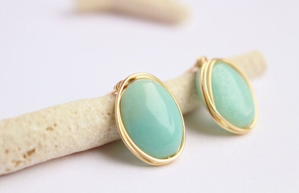 アマゾナイト オーバル Wire ピアス/イヤリング