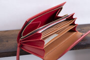 がばっと開けて中身が一目で確認できる、ジャバラ式の長財布。
