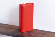 姫路産アラバスタレザー マチの大きいお財布 本革 レッド じゃばら 長財布 aw-10hn