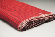 鮮やかな朱色の格子紋古布一反分です。