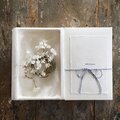 種子のコサージュは初めてです。 ブルーの軽やかな美しさがより一層引き立つようです。 微妙に色が違う小さなひまわりたちが愛らしいです。
