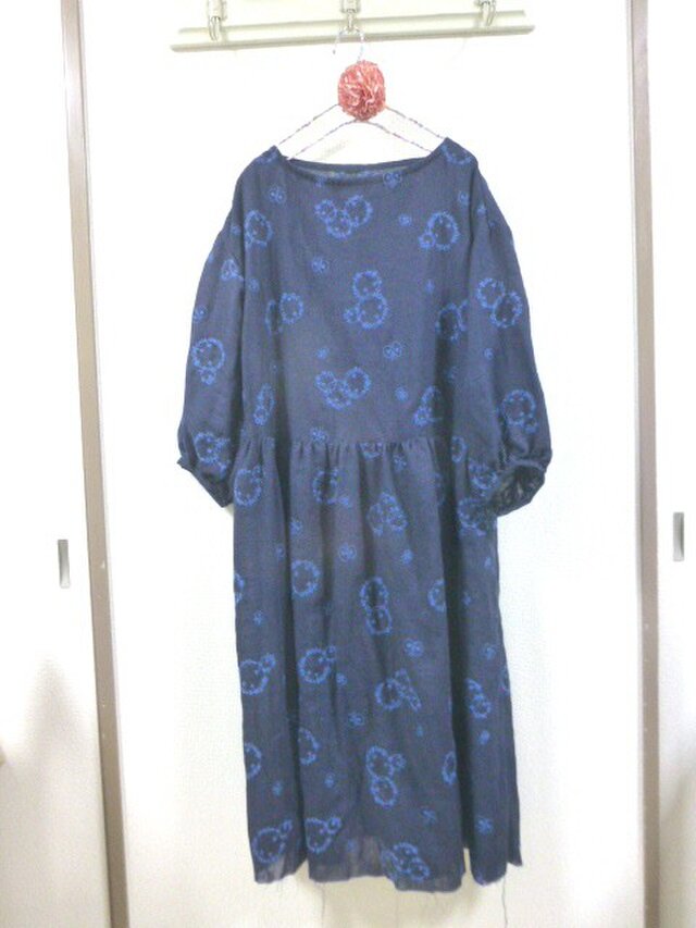 リネンの服が大好きです。なかなか出会えない素敵な花柄のワンピース、ネイビーの地色も肌なじみがよく、袖も可愛くて、とても気に入りました。大切に着たいと思います。ありがとうございました。