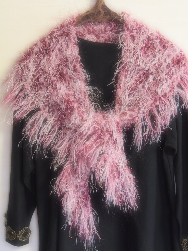毛足の長い引き揃え毛糸を使用したので、ファーのような質感です。