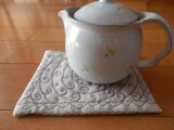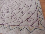 麻の生地に中ワタをはさみ、刺繍糸でキルティングしました。