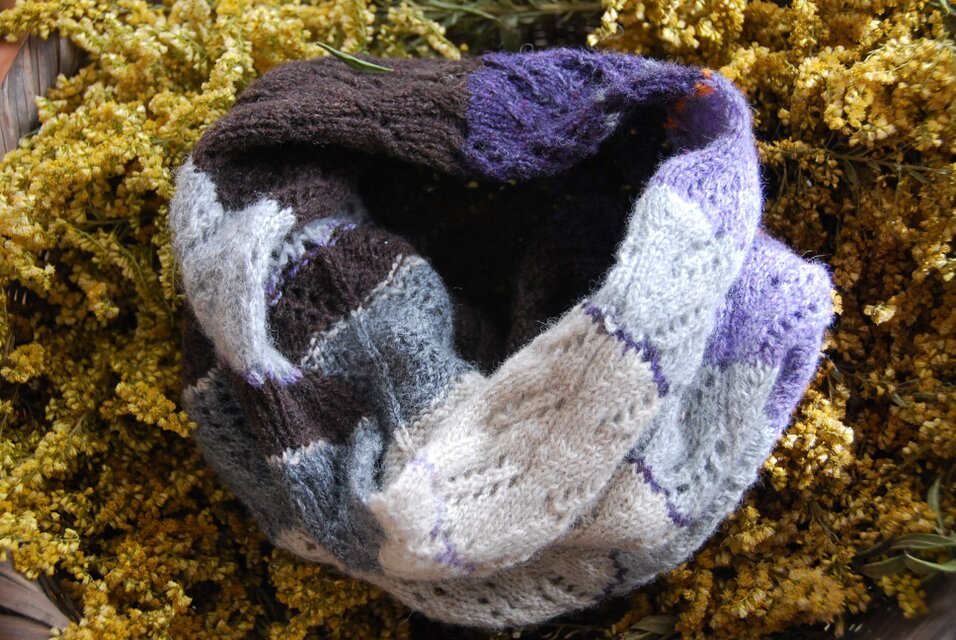 スコットランド製ウール糸で編むネックウォーマーです。