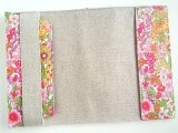 リバティの人気生地、マーガレットアニー Margaret Annie(ピンク)とハーフリネンの生地で文庫本サイズのブックカバーを作りました。