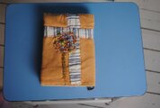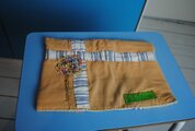 生地を手縫いでちくちくつなげ、世界に1つの本カバーを作りました。