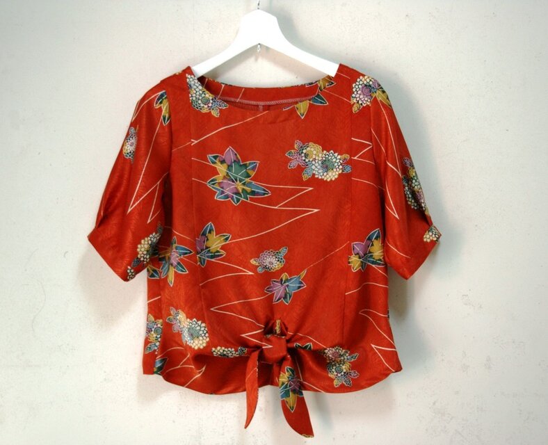 着物の道行から、大人可愛いブラウスを作りました。