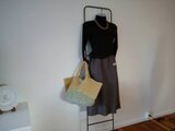 平置き 底直径33㎝、開閉口52㎝ 高さ27㎝ (いすれも編み物なのでおよその数値です)