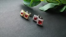 スワロフスキーの新色スカーレットでシンプルなポストピアスを作りました。(*^^*)