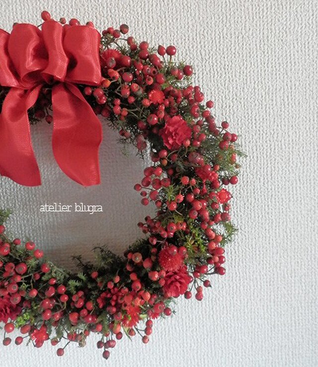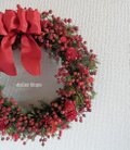 赤いリボンを付けてクリスマスリースとしてもお楽しみいただける作品です。