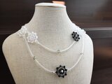 スワロフスキークリスタルのビーズで作った、モノトーンの小花が散ったようなロングネックレス。