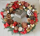 こころ浮き立つウィンターホリデーを待ちわびる頃から かざっていただけます。 ボリューム(厚み)感のある クリスマスリースです。