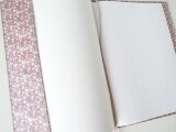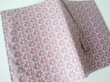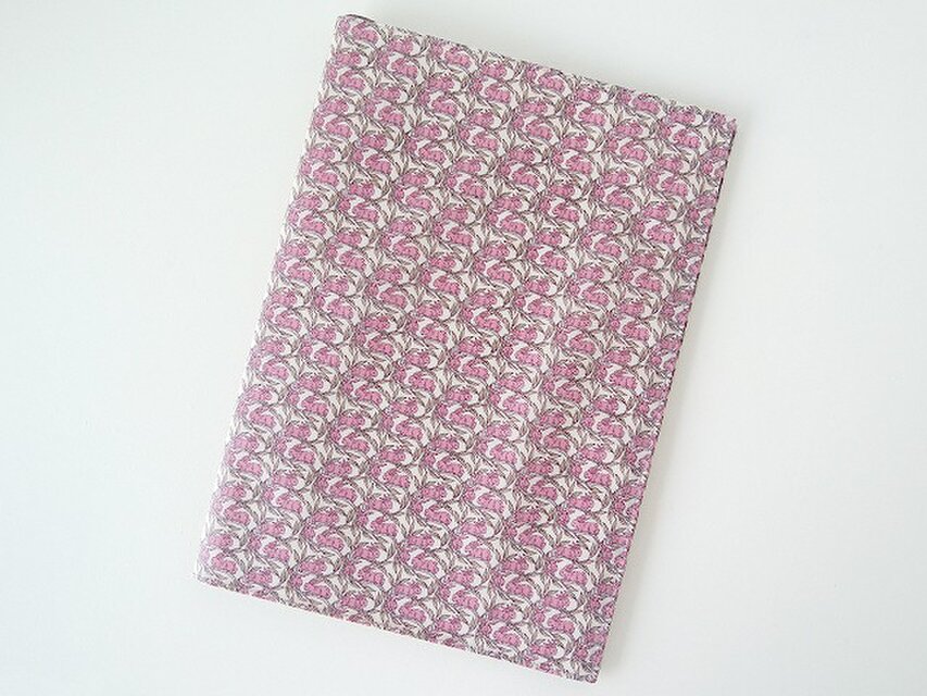 リバティの人気生地、コットンテイル Cotton Tail(ピンク)のラミネート生地(つや無)でB5サイズ(大学ノート)のノートカバーを作りました。