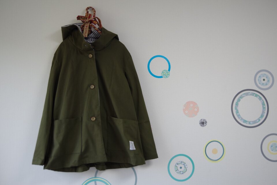 私の定番、フード付きのジャケットをコーデュロイ生地で製作いたしました。