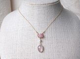 素材:スピネル・パール・ローズクォーツ・シルバー(石枠)・真鍮・K14ゴールドフィルド(チェーン)