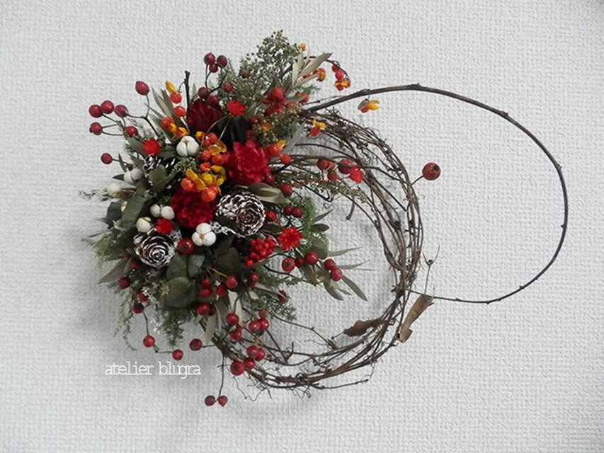 しっとりした大人色のリースで、とても素敵です。 毎回、素敵な作品をありがとうございます。