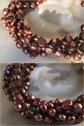 照り艶の良い赤みがかったメタリックなブロンズカラーの約6~7.5mmサイズのフラットバロック淡水パールをたっぷりあしらい、それぞれひと粒ごとにブラウンのシルクコードで結び留めたオールノット仕立てのシンプルなネックレスに仕上げました。