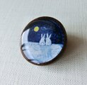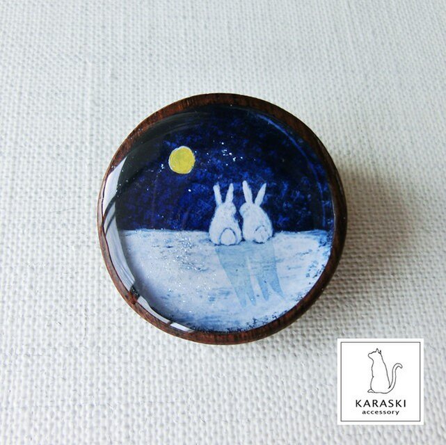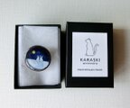 手描きの絵を樹脂で閉じ込めたブローチ。