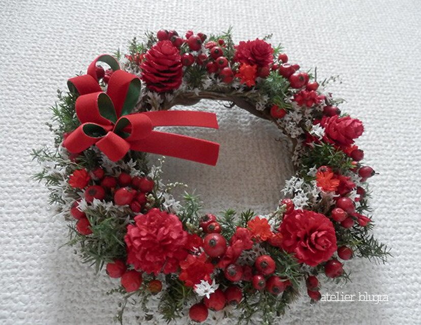 しっとりした大人色のリースで、とても素敵です。 毎回、素敵な作品をありがとうございます。