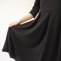 ・1枚は常備しておきたいフォーマルな黒ワンピース。サラサラとした触り心地で適度な重みがありますが厚さは普通程度。冬はジャケットなど羽織ものをプラスして、秋春夏は1枚で。真冬・真夏以外の3シーズン着られる絶妙な厚さです。