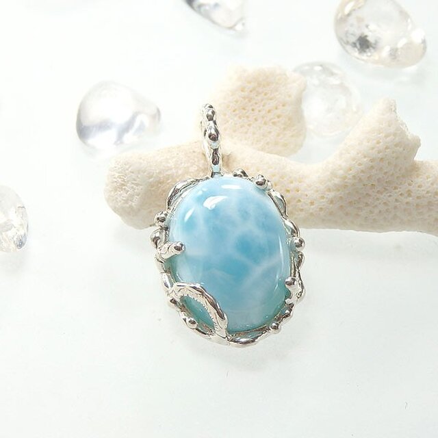 波打ち際のような模様が美しい小粒のラリマーを、有機的なデザインのシルバーペンダントに仕上げました。