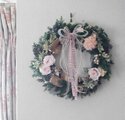 優しい色のピンク色を使っていますが、アーティフィシャルフラワーやリボンのきらきら感が華やかなクリスマスを演出します。